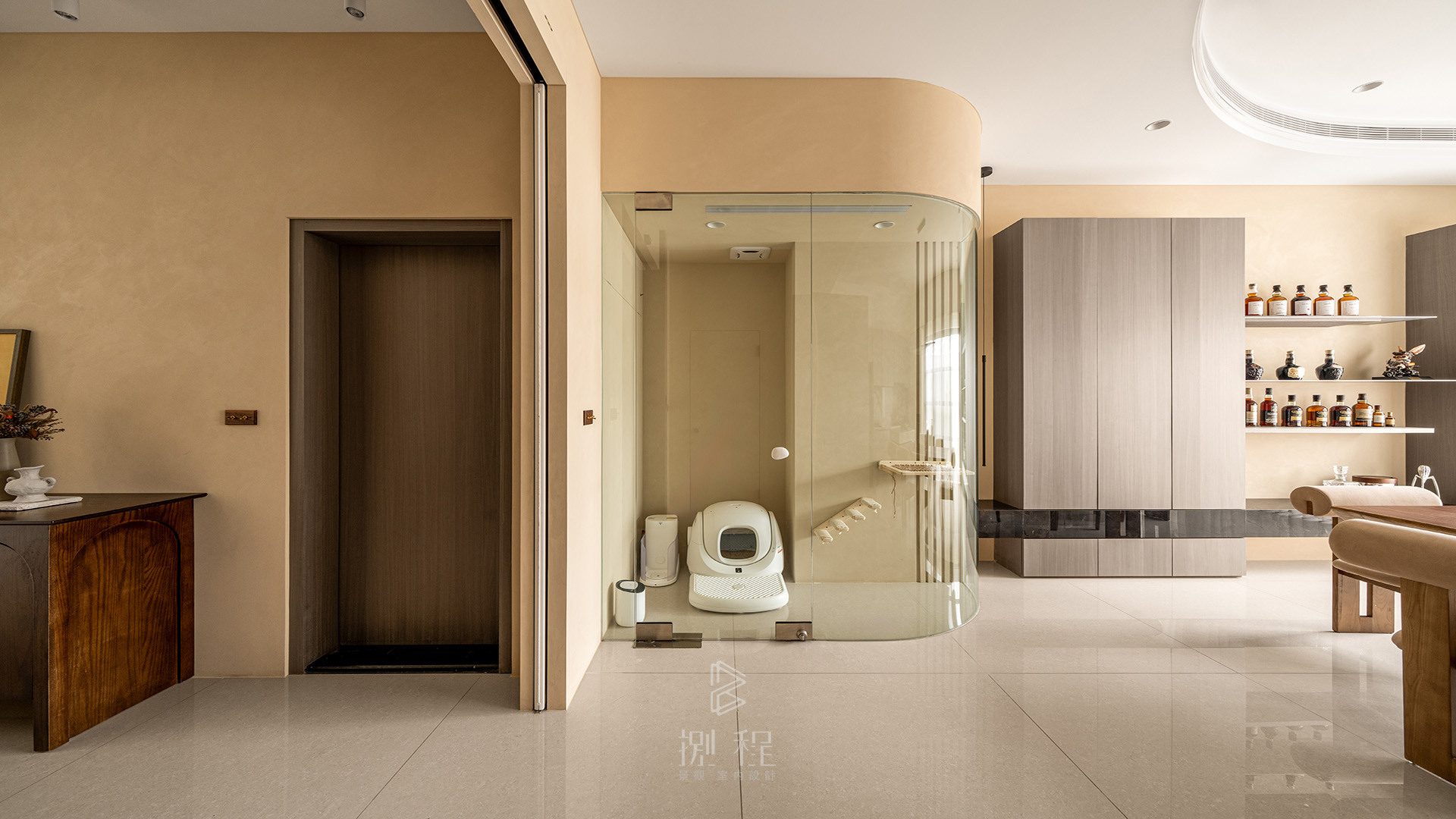 機能櫃設有隱藏貓砂盆區/自動飼料器空間,更美觀整齊