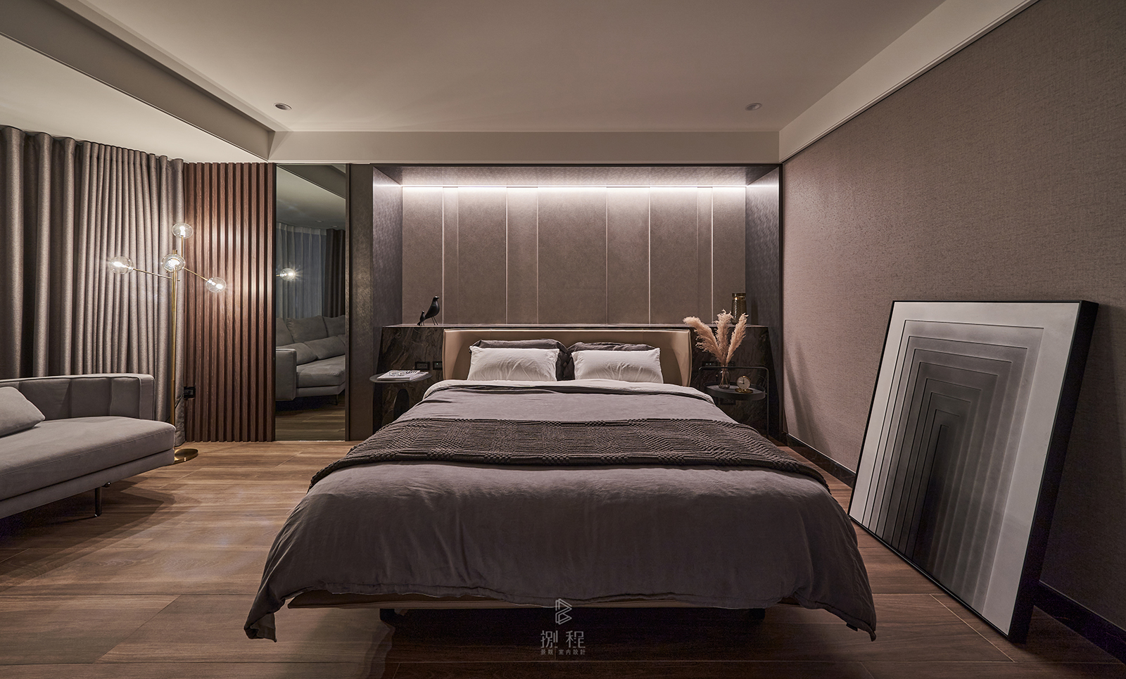 臥室則可選擇絨布床頭板,增添柔軟層次。